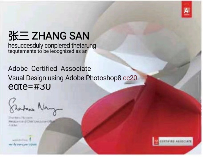 ① “Adobe 中国认证产品专家” (Adobe Certified Product Expert ) 单科证书;